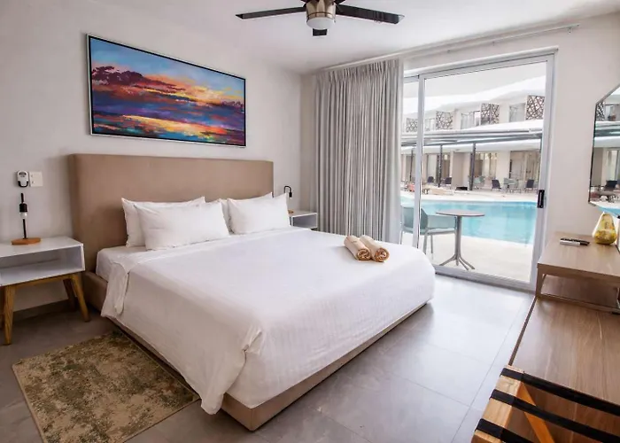 Modern Central Studio W Pools & Beach Nearby Playa del Carmen villa offers proximity to nearby tourist spots, such as the Quinta Alegria Shopping Mall, situated about 5 minutes' walk away.